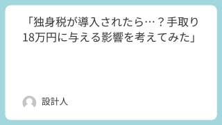「独身税が導入されたら…?手取り18万円に与える影響を考えてみた」