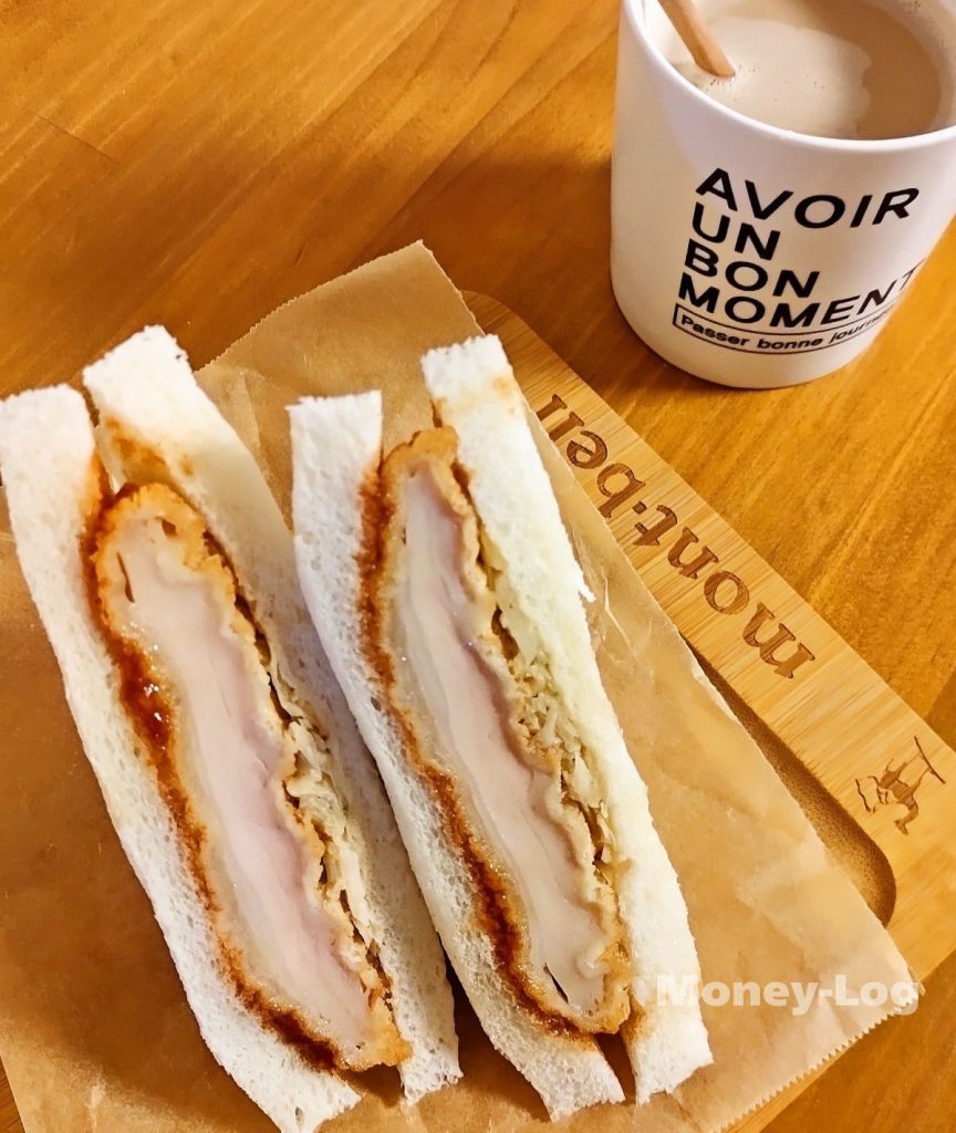 商品はファミリーマートの「特製ソースが決め手のチキンカツサンド」430円。サンドイッチはなんでも美味しい。けどこれは食べた感が強くて特に好み。たすけておにぎり😥が付いてて50円引きだけど、今回は定価での比較。