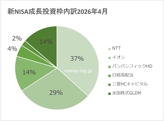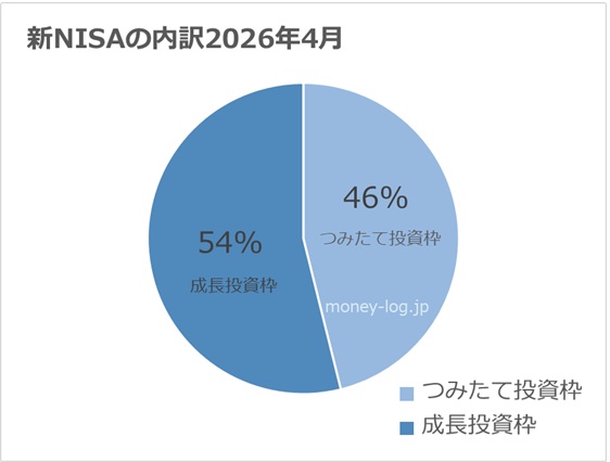 新NISAを始めて2年目になりました。今回は、2026年4月時点の新NISA部分のポートフォリオを公開。「つみたて投資枠と成長投資枠の割合」と、「成長投資枠の銘柄の割合」をまとめています。